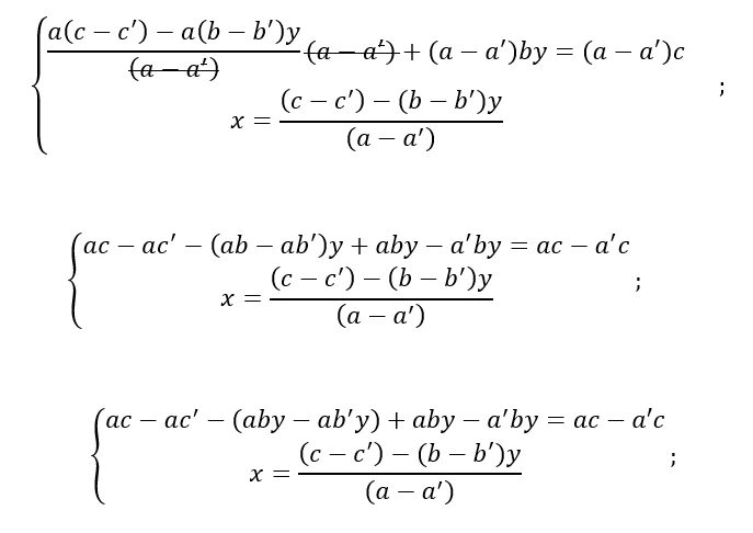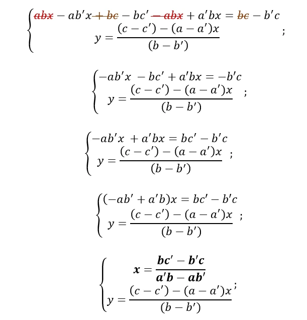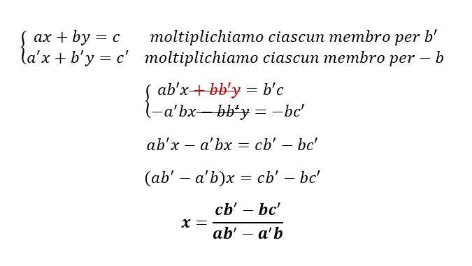 Se applichiamo lo stesso metodo che abbiamo usato per ricavare la formula di y avremo come risultato la formula risolutiva della prima incognita: