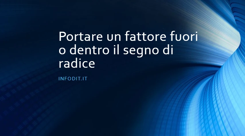 Portare un fattore fuori o dentro il segno di radice consiste nel trasportare il coefficiente numerico o letterale all’interno o all’esterno del radicale. Per poterlo fare è necessario che il radicale sia possibile anche dopo che il trasporto è stato ultimato.